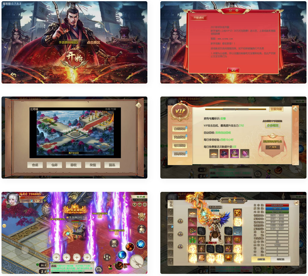 2.支持PK赛、跨服竞技场、组队以及市场摆摊购买、练功场的难过功能玩点。
